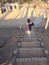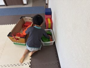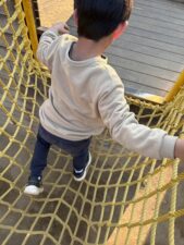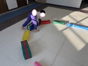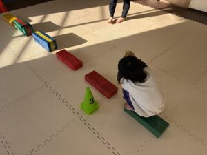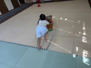 帰り道は一歩ずつ歩いて進みますよ!もちろんフープに当たらない様に中を通ります♪