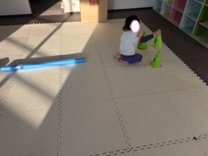 コーンを動かすときは、しゃがんで丁寧に動かしましょう☆