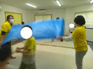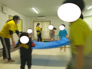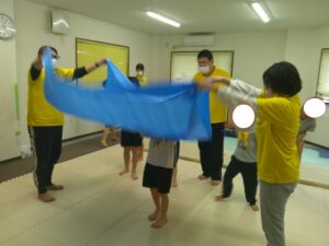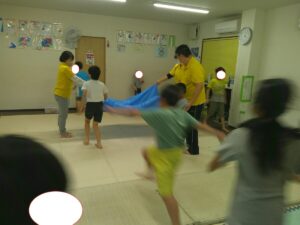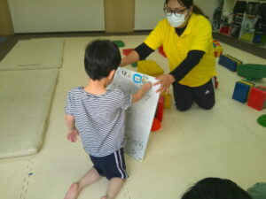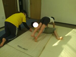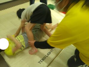 お兄さん・お姉さんが練習中のお友達にペースを合わせて