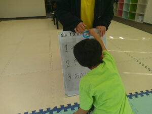 前のお友達をみて真似して取り組んだお友達