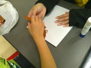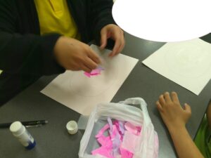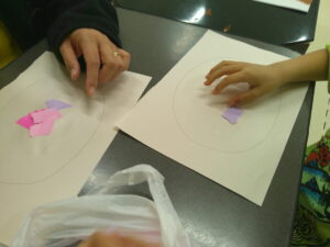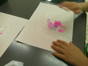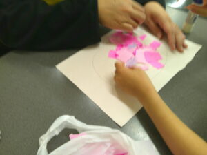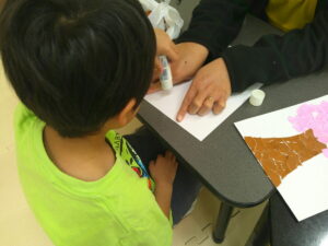 手を使って「ぺったん」と折り紙を張る作業を頑張りました✊✨