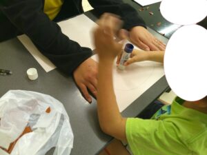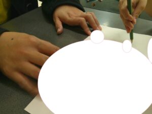 「グルグル」と声を出してノリを塗ったり
