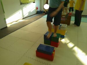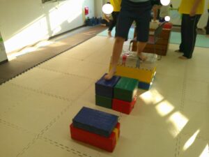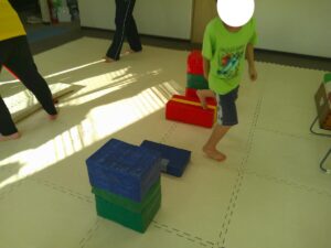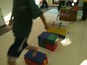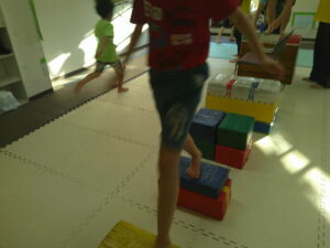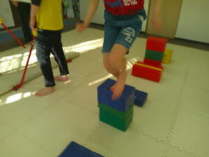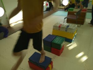 平均台や跳び箱の真ん中を使って上手に走れたお友達も