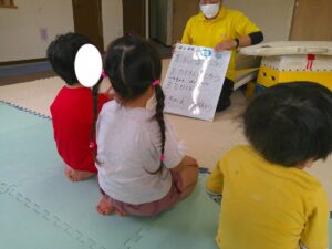先に教室に来ていたお友達、先生が来るまで上手に座って待てました😊
