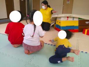身体の使い方の練習中のお友達も屈伸運動を頑張りました😊