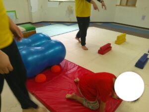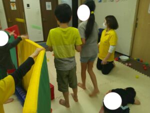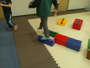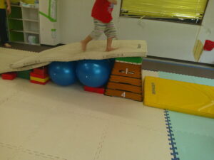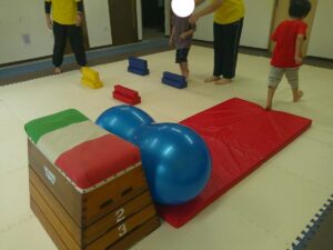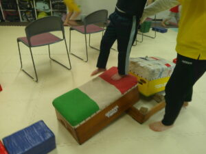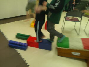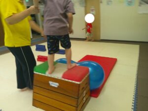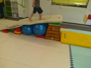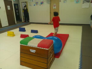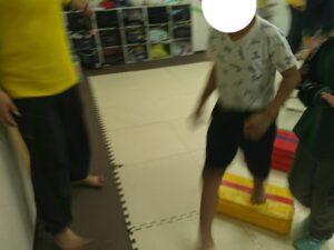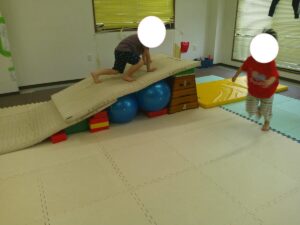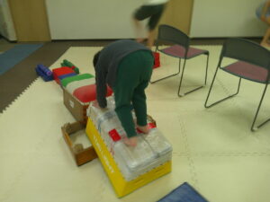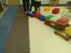 こちらのコースは途中で斜めになっている跳び箱のお山を越えて歩きます✨