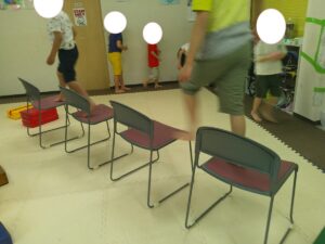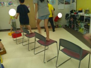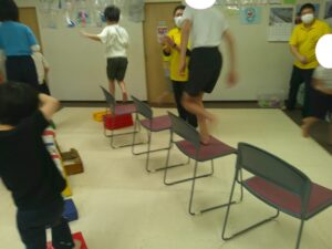こちらのコースは椅子の上をダッシュで駆け抜けて