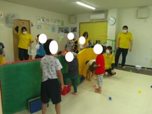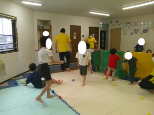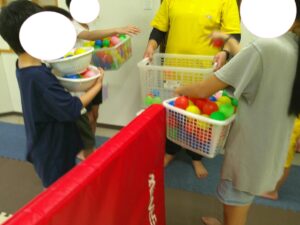 2チームに分かれてボールを相手の陣地にどんどん投げよう✊✨