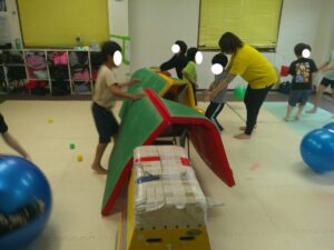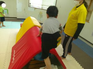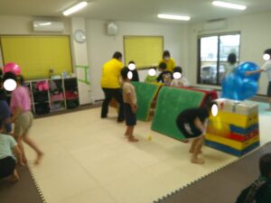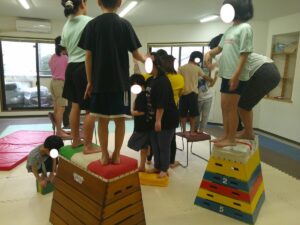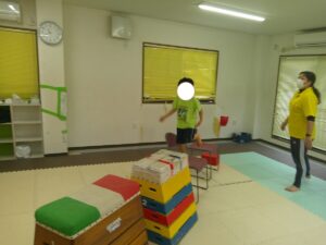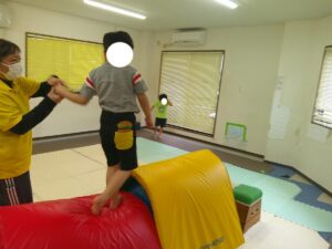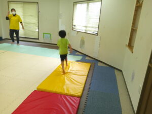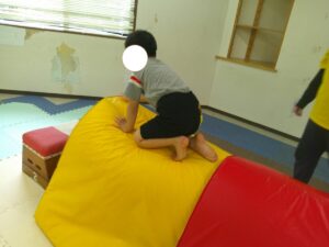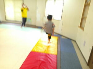 帰り道はグラグラと動く不安定なマットの上を歩いて進もう(≧▽≦)