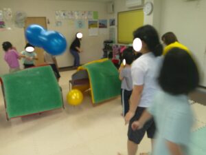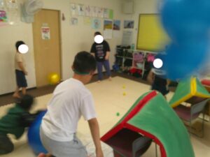 小さなボールを投げたい時には、お友達に声をかけてあげたりと