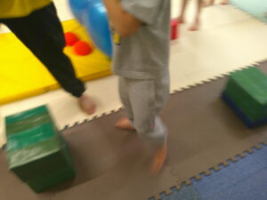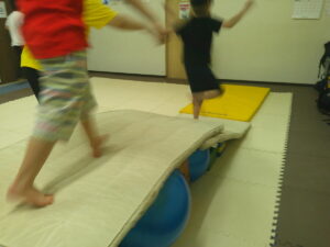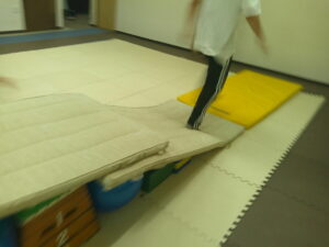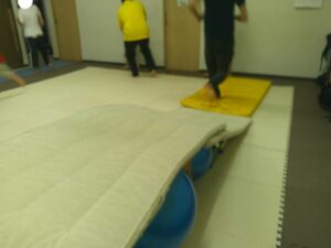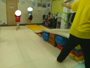 跳び箱とバランスボールでできた坂道をダッシュ💨