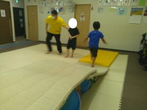 こちらのコースは平均台に乗ったらジャンプ!