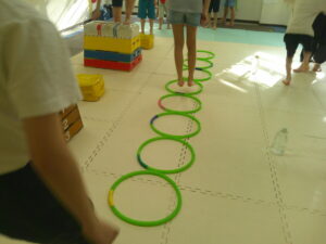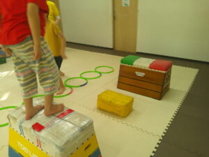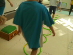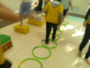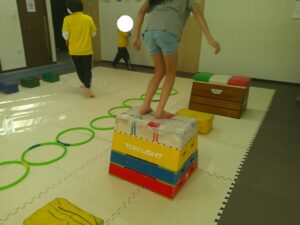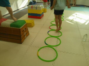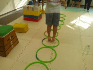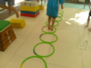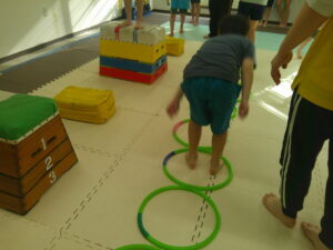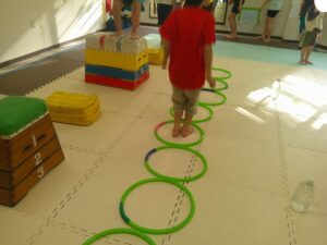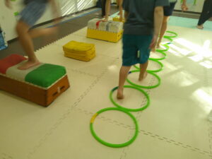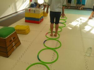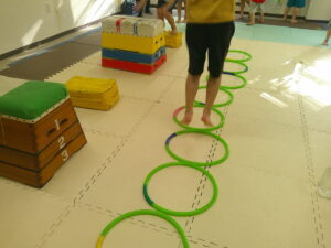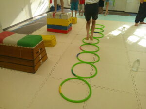 こちらのコースは平均台を走ったら今度はフープの中を走って戻ろう✊✨