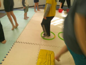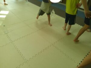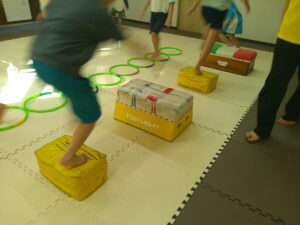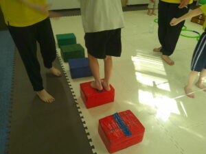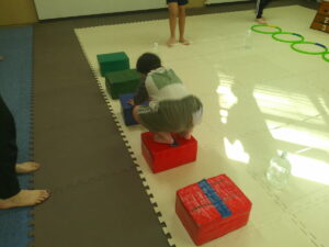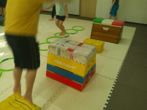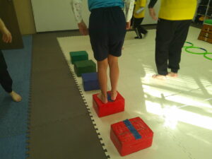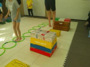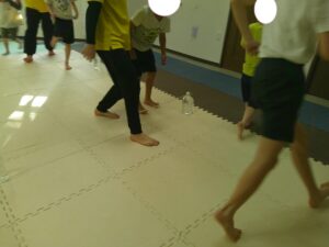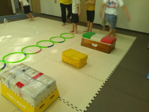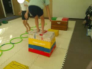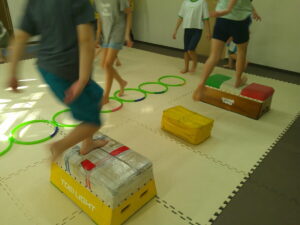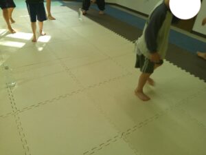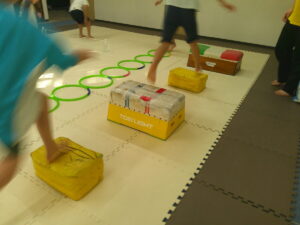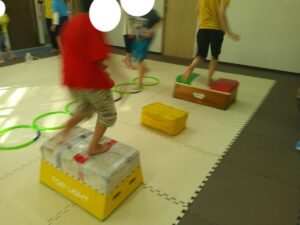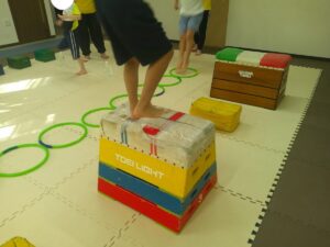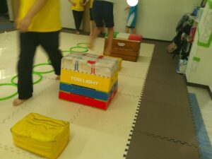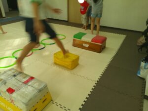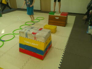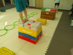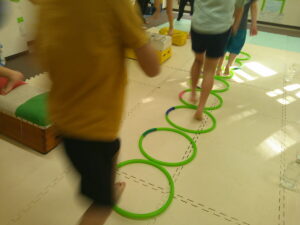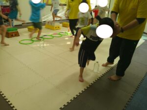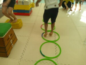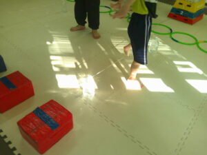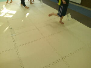 後半は歩かず進むことが出来る様にお友達との間隔を考えて取り組みました👏✨