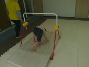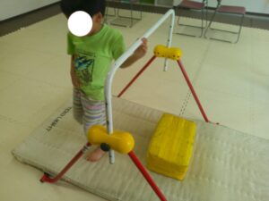 鉄棒に高さがあり踏み台を使って前回りをしていましたが