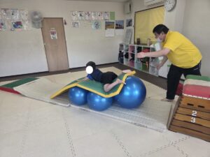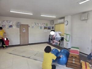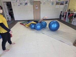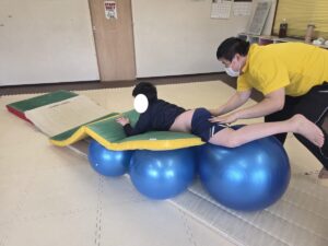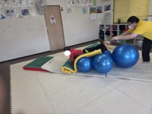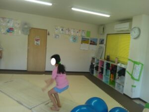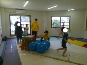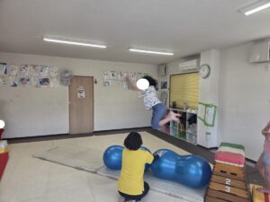 バランスボールを飛び越えよう♬
