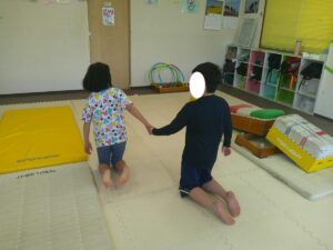 2人で手を繋いで一緒にお芋の様にコロコロ進もう!