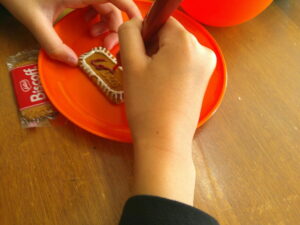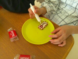 チョコペンを使ってビスケットにお絵かきしよう✨