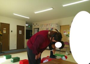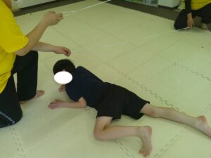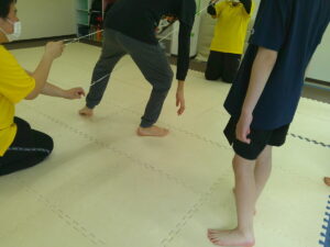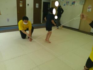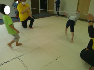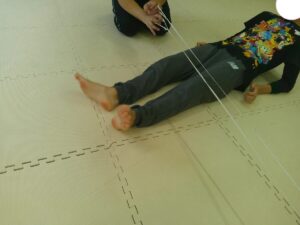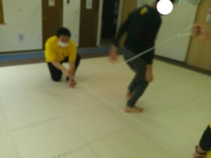 時間が少し余ったので、ゴム紐で「上・真ん中・下」遊びもしました😊