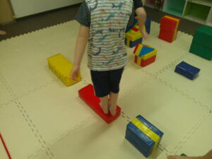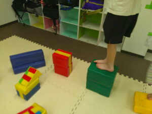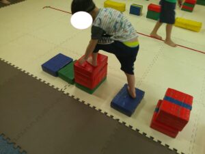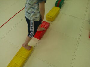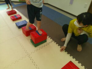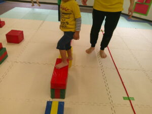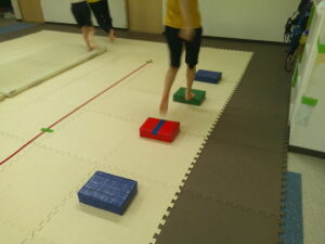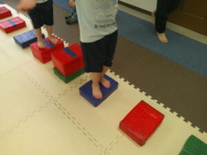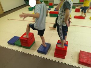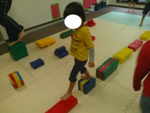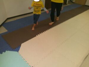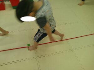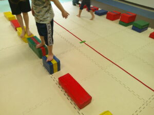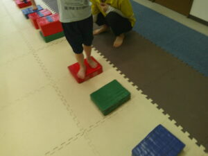 バランス歩きが得意なお友達も、少し苦手なお友達も、先生からのアドバイス