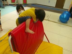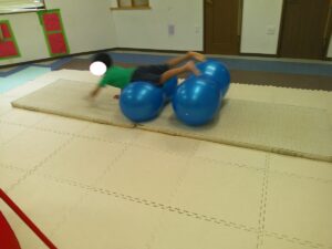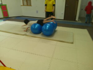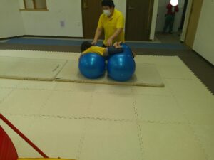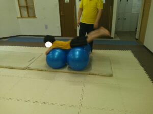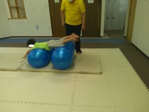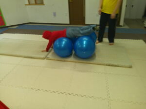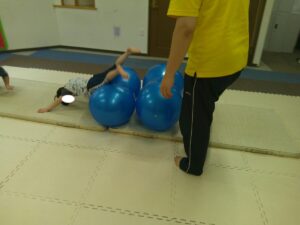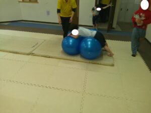 鉄棒の山を越えたら、バランスボールにダーーーイブ(≧▽≦)