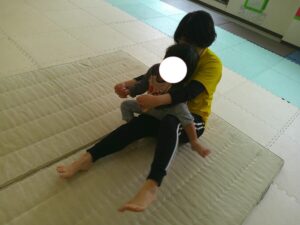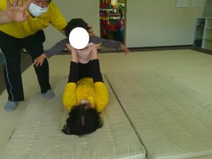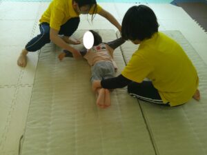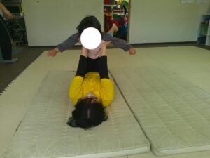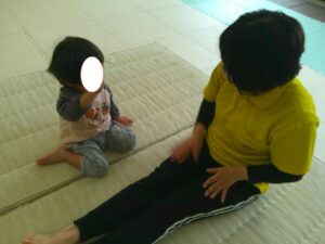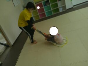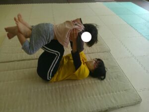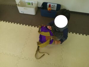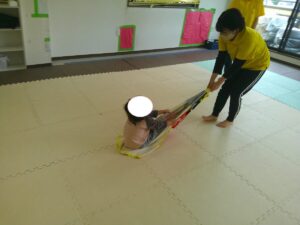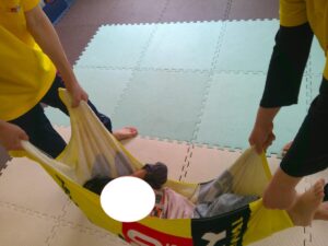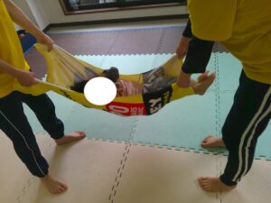 ふれあい遊びの最後は「タオルブランコ」