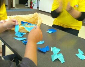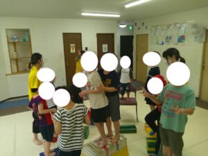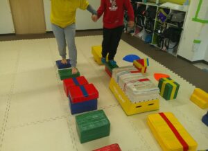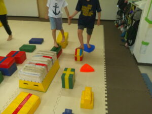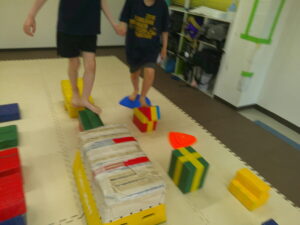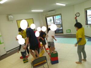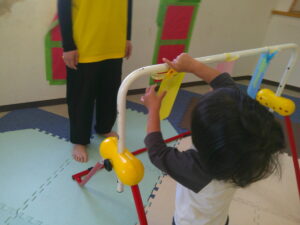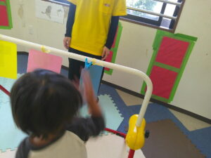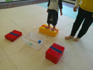今日も先週に続きお友達と協力して取り組む活動をするので