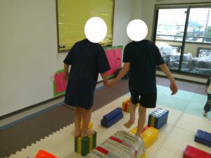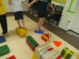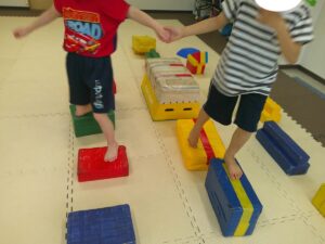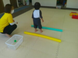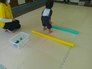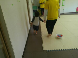 バランス歩きもお兄さんのお友達は小さなお友達に合わせて進むことが出来ていましたね🎵
