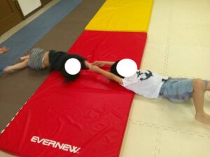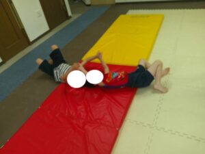 お友達をよくみて息を合わせながらみんな上手に転がれました😊