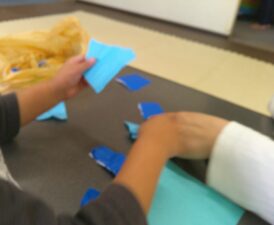 先生が入れてくれた切れ目をよくみて段々とちぎることが出来ました😊✨