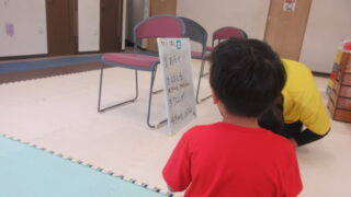 今日も元気に活動しよう✨大きな声で朝のご挨拶、「おはようございます🌥」「お願いします」 一つ目の活動は、『歩く👣』一本橋を落ちない様に歩いて進もう(^^♪帰りは、椅子の上を跨いで戻ってきてね!! 流石のバランス感覚👏✨椅子の間がドンドン離れ...