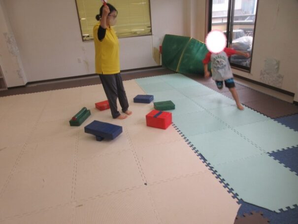 9月24日(水)児発 放デイ 運動療育 釣りゲーム 大玉転がし ジャンプ 走る 登る