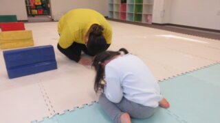 今日も元気に体を動かそう(^^)/大きな声で朝のご挨拶、「おはようございます☀」「お願いします」 早速、一つ目の活動です、『お芋コロコロ 歩いて』マットの上はお芋になってコロコロ転がって進みます🍠反対側まで進んだら、ボールを1つ持って、取っ...