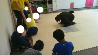 4月2日(木)児発 放デイ 運動療育 走る ジャンプ 歩く 魔法の絨毯 前転 色合わせ マット 聞く力